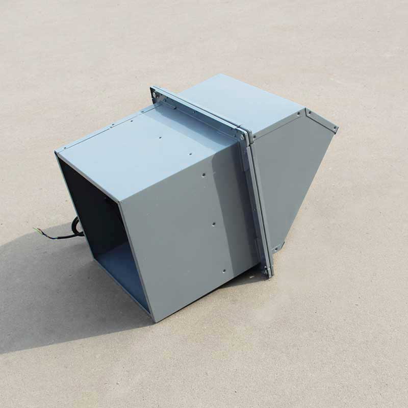 WEX(DWEX)系列風機一般用于邊墻壁式排風,配設45°防雨罩(或特殊制造成60°)和防蟲網(夜間可防止昆蟲循燈光飛入車間)。可按需要制成邊墻送風機型號為DWSP(WSP),配設90°防雨罩
